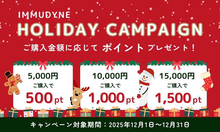 期間中、イムダイン公式オンラインショップにてお買い上げの方に、ご購入金額に応じたポイントをプレゼント!